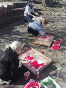 In den vergangenen Wochen wuselte es fleißig im und hinter dem Haus Steinstraße: Im Hinterhof wurden die Proviantboxen mit frechen und fröhlichen Motiven besprayt. Der Kopierer lief heiß – für die vielen, künstlerisch-anregend gestalteten Aktivitätsblätter. Lebensmittel und andere Materialien wie das Kratzpapier wurden ausgepackt, sortiert und in einer langen Packstraße im Café Yellow wieder passend eingepackt.