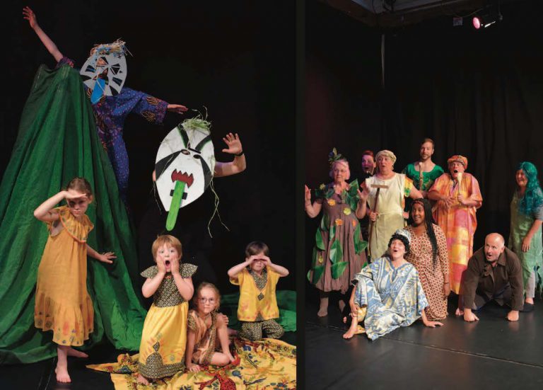 Über die Theatergruppe: 18 SpielerInnen im Alter von 5-82 Jahren stehen gemeinsam auf der Bühne. Sie spielen, tanzen und singen Altes und Neues aus dem reichen tansanianischen Märchenschatz.