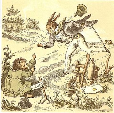 Märchentheater für Kinder ab 4 Jahren mit der Gruppe “Illustris”: Ein sonniger Sonntag am Waldesrand, der Igel macht es sich auf seinem Acker gemütlich, während sich seine Frau, die Igelin, über das viele Unkraut ärgert. Der Rabe fliegt entlang, um die neusten Neuigkeiten zu verkünden, da stolpert der elegante und hochnäsige Hase über den schlafenden Igel. Ein Streit beginnt. Wer hat die schönsten Beine? Ist es wichtig gerade oder krumm zu sein? Kann ein Acker voller Unkraut ein Acker sein? Um sein Feld und sein Zuhause nicht zu verlieren, schlägt der Igel schließlich einen Wettlauf mit dem Hasen vor. Doch kann er diesen überhaupt gewinnen?