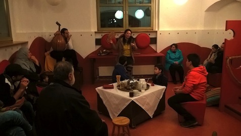 Im Saal wird um 18 Uhr eine Dabke- Tanzstunde stattfinden und um 19 Uhr traditionelle syrische Musik erklingen.