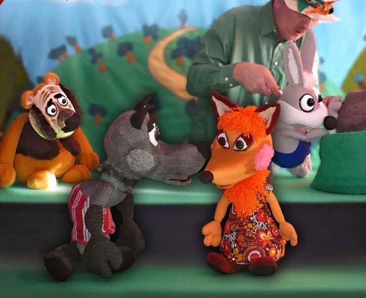 Puppentheater für Kinder ab 3 Jahren: Im Wald lebte ein Hase, der vor allem Angst hatte. Eines Tages fand der Hase eine Werkzeugkiste. Nun baute sich ein Haus und dem Bären einen Bienenstock. Aber dann stahlen der Wolf und der Fuchs die Werkzeuge und zerbrachen den Bienenstock. In der Hoffnung, dass der Wolf und der Fuchs sich bessern werden, baute der Hase ein Puppentheater, in dem die beiden dann spielen konnten.