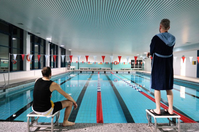 Für das Aufeinandertreffen der zwei Protagonisten in diesem Stück scheint das Schwimmbad der perfekte Ort zu sein.
